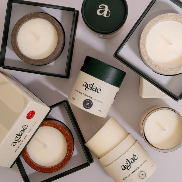 Découvrez La Capsule Aglaé, notre collection exclusive de recharges pour bougies parfumées éphémères. Conçues dans notre atelier, chaque édition limitée est une invitation à renouveler l'ambiance de votre intérieur au rythme des saisons. Ne jetez plus vos contenants : réinventez-les avec nos senteurs saisonnières uniques.