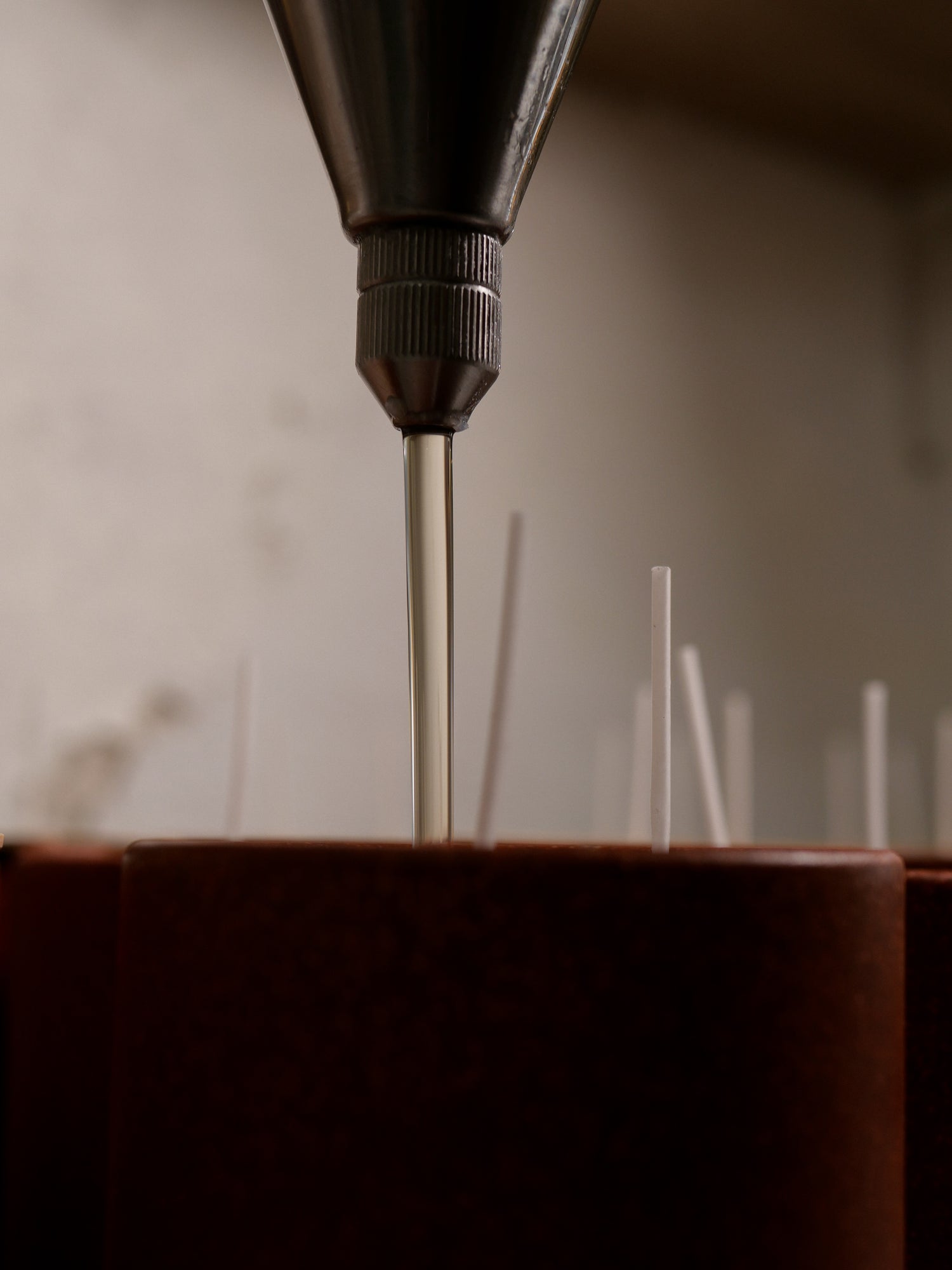 Chaque bougie est conçue et coulée à la main dans notre atelier rochelais. Ce processus artisanal qui garantit une attention méticuleuse à chaque détail et confère à chaque création une personnalité unique.