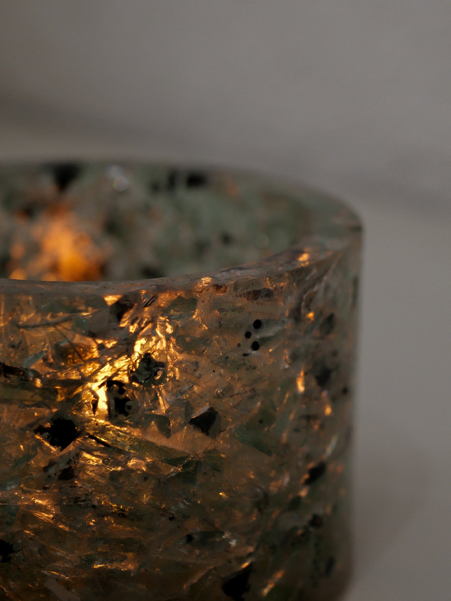 Conçus à partir de 75% de matières recyclées, nos pots mêlent coquilles de moules, verres de bouteilles, briques ou porcelaine, offrent une texture et un aspect unique. - La Collection Intemporelle : L’élégance de l’éco-résine
