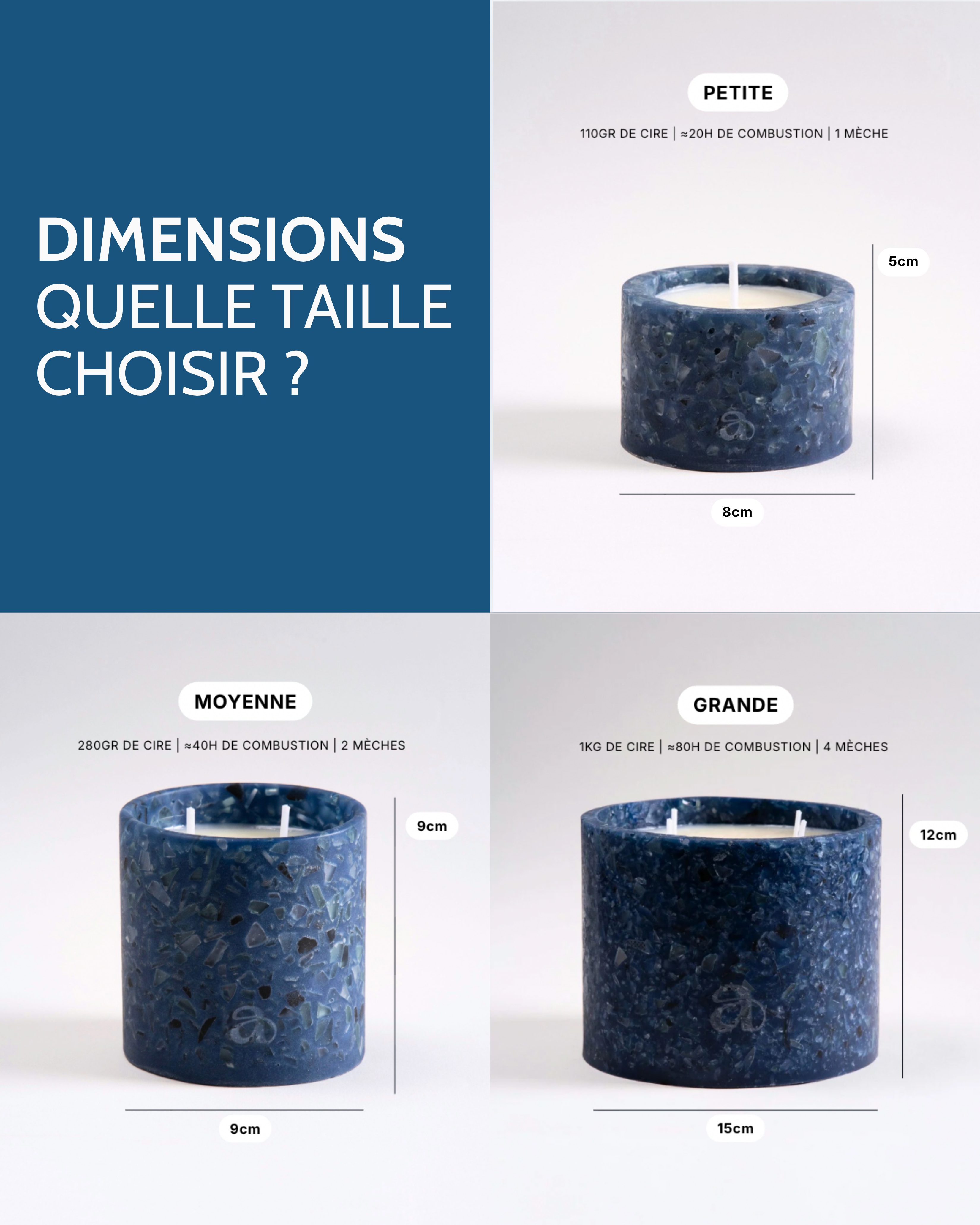 ≈ 20h de combustion · Idéale chambre & petits espaces - Moyenne : 280 g · Ø 9 cm · H 9 cm