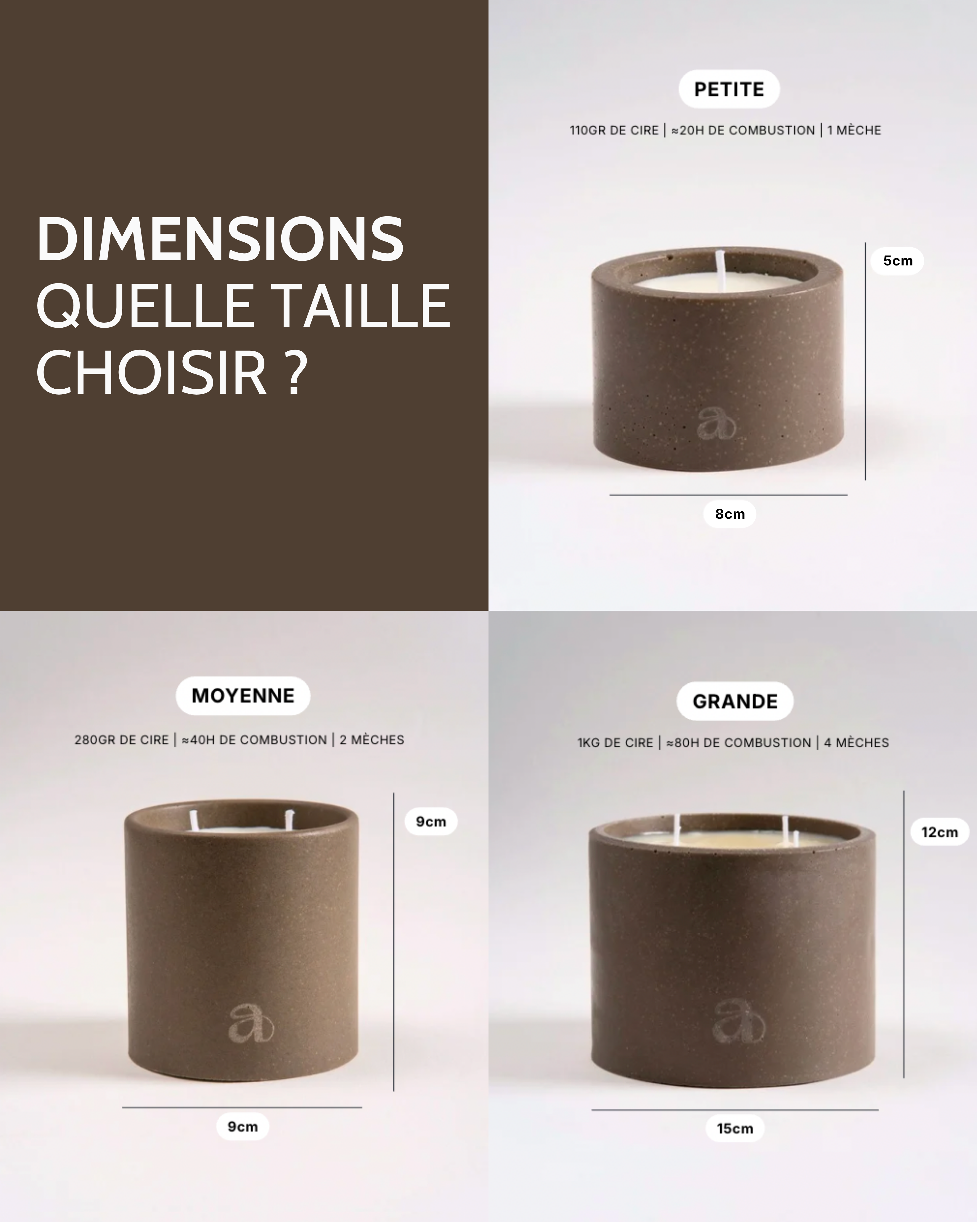 ≈ 20h de combustion · Idéale chambre & petits espaces - Moyenne : 280 g · Ø 9 cm · H 9 cm