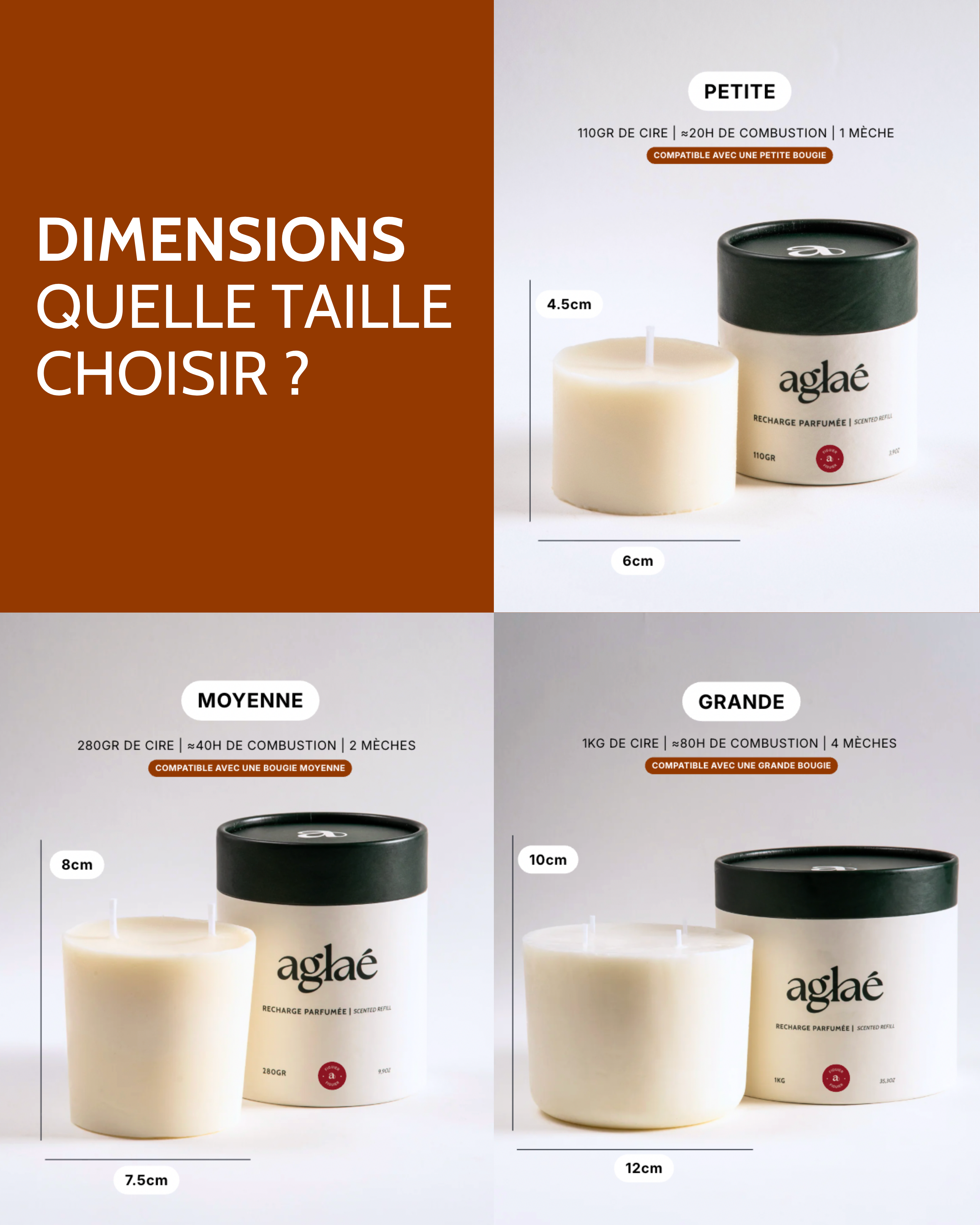 - Petite : 110g · Ø 6cm · H4cm