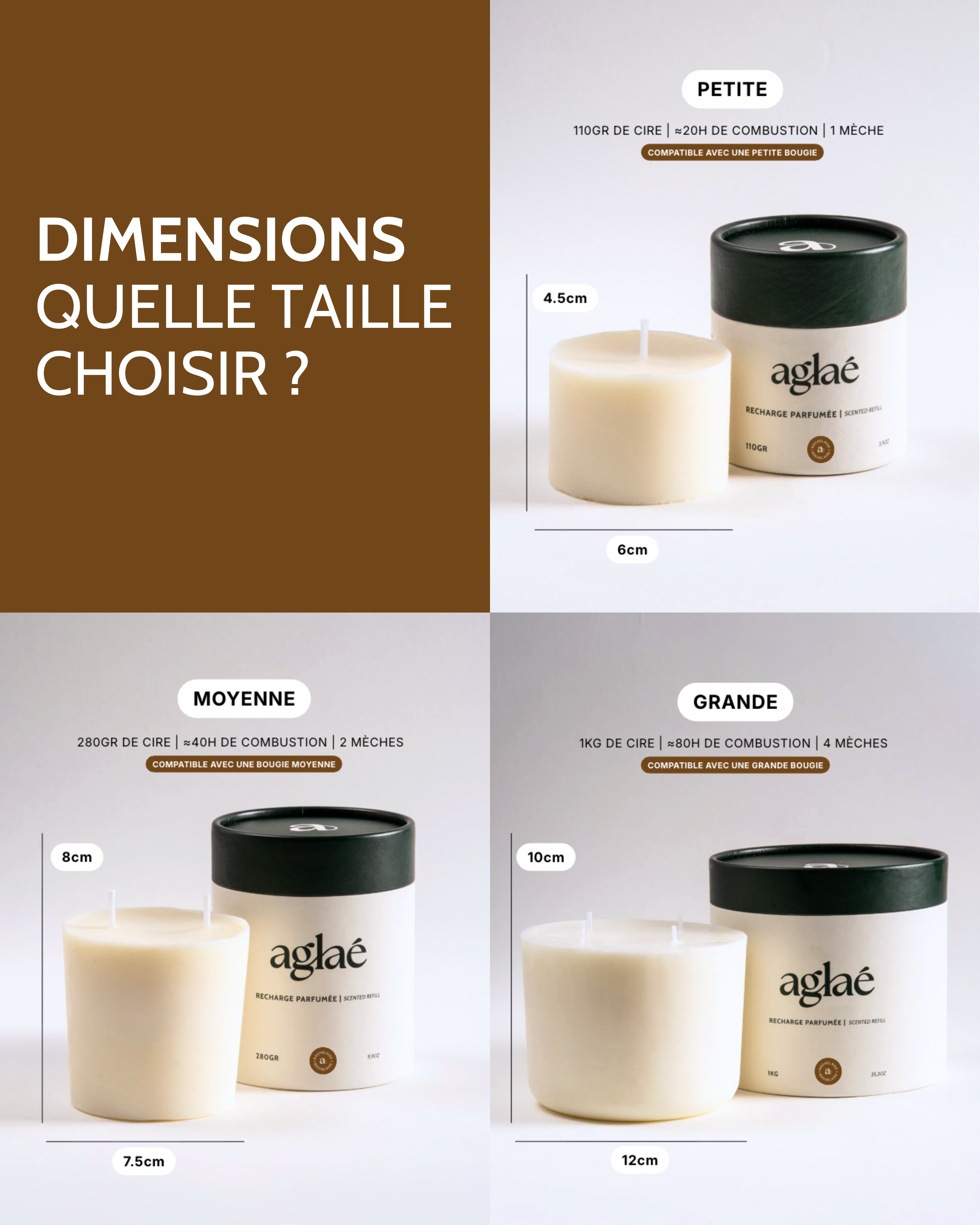 - Petite : 110g · Ø 6cm · H4cm