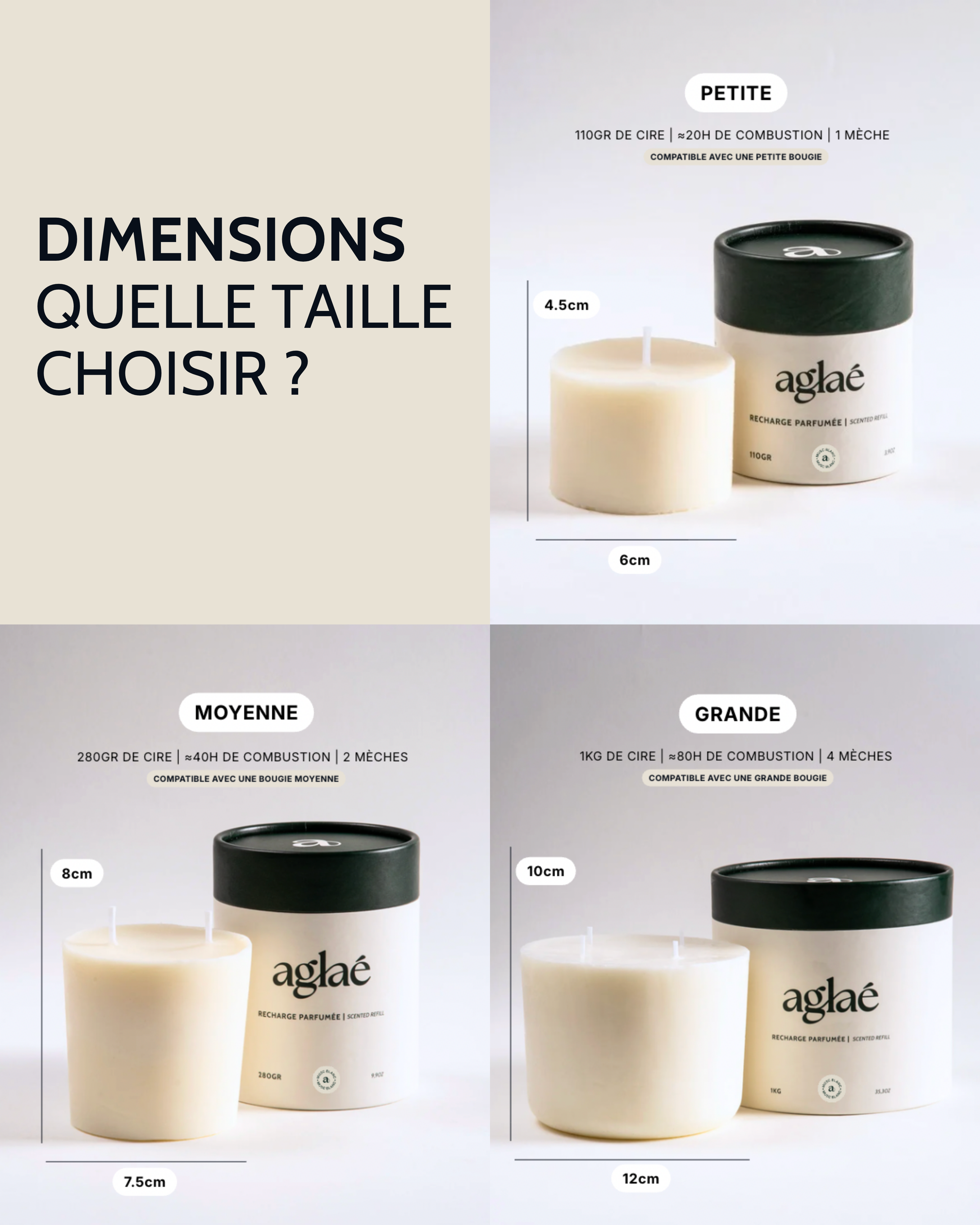 - Petite : 110g · Ø 6cm · H4cm